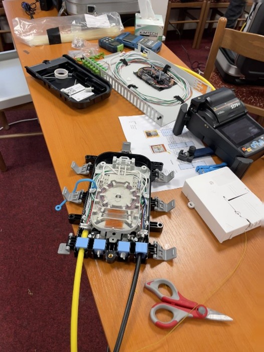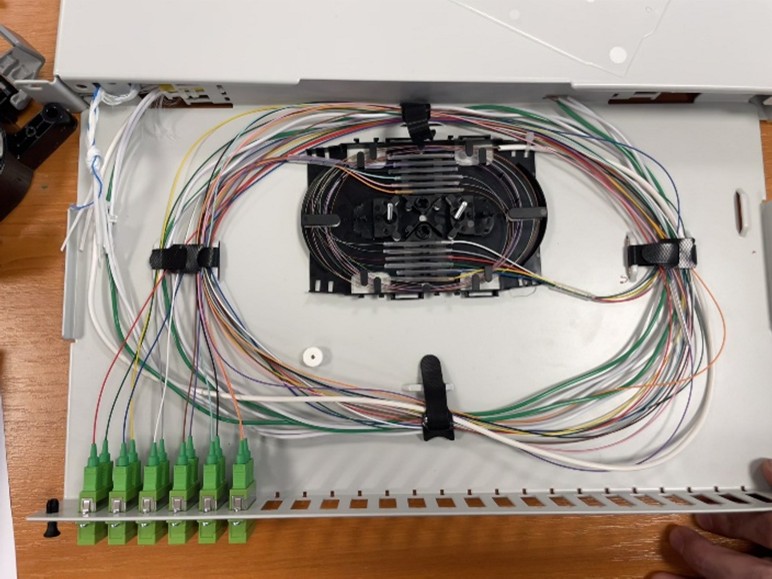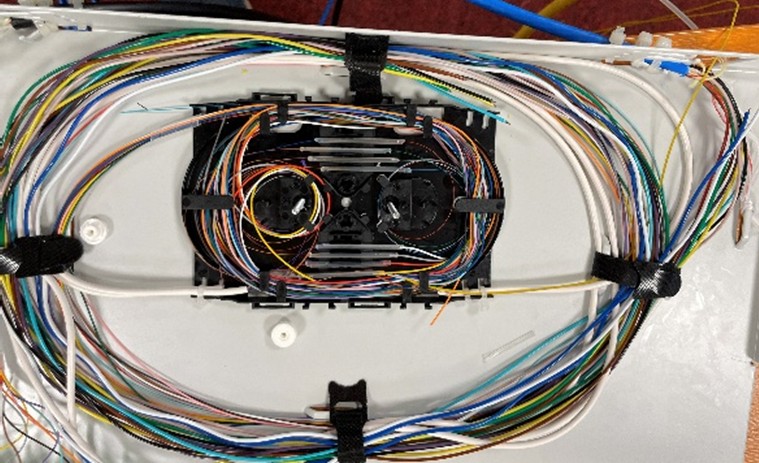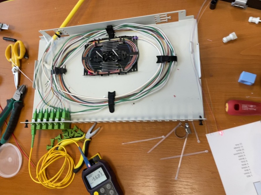 Jednotlivé úseky vláknem byly vzájemně propojeny svařováním. Stejně jako pigtaily s SC/APC konektory byly přivařeny na vlákna zakončená v koncových rozvaděčích a boxech. Nevyužitá vlákna v profilu kabelu zůstala nezakončena.