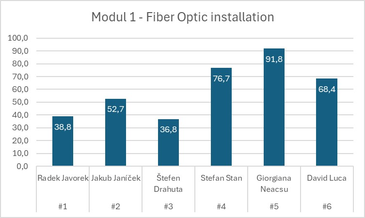 Miloš proměřil kontinuitu a útlumy všech zakončených vláken přímou metodou. Případné nekvality byly zohledněny v bodovém hodnocení. Některé nekvality si účastnici mohli rovnou opravit, nicméně to už bylo mimo soutěž.