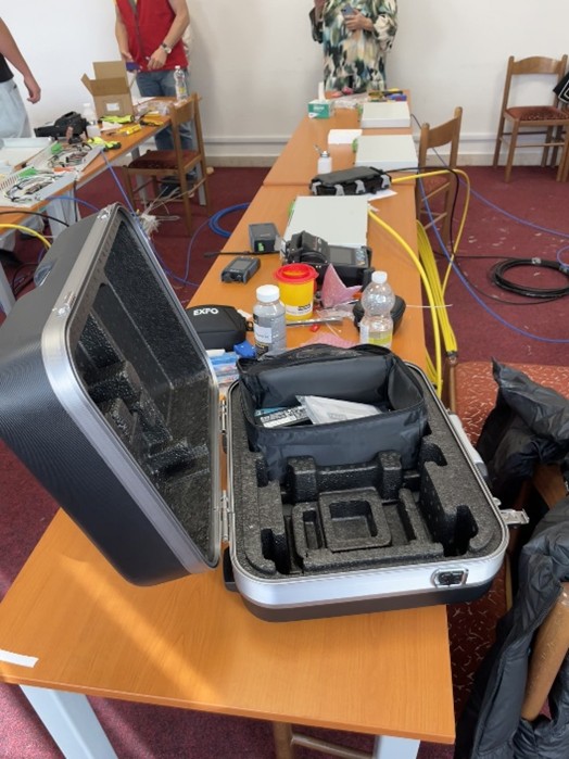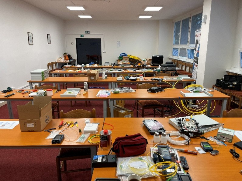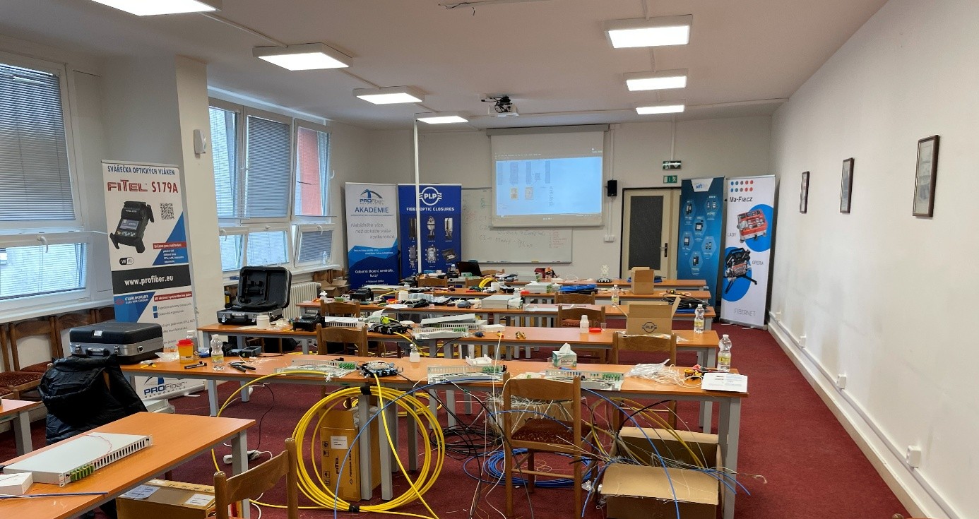 PROFiber Networking CZ s.r.o. zajistil 6 zcela nových sestav svářeček, lámaček a nářadí. Každý účastník měl k dispozici svářečku s aktivním 3D vystředěním na jádro Furukawa FITEL S179+.