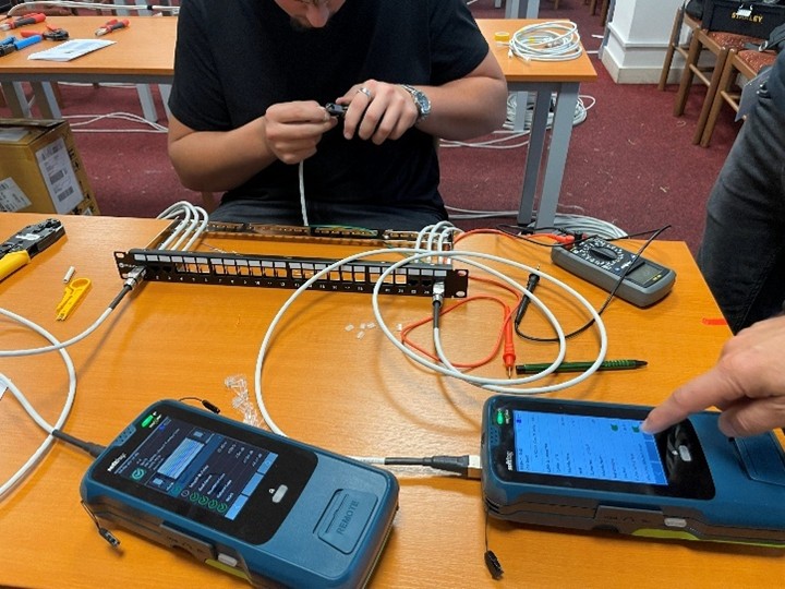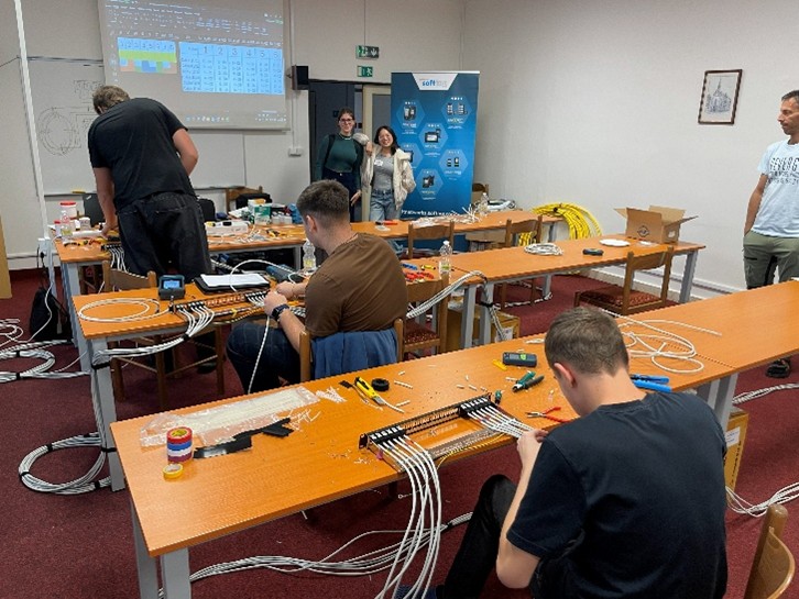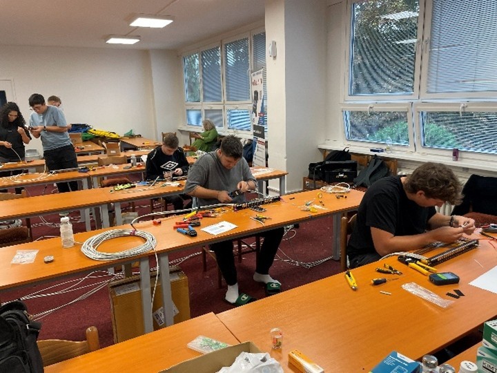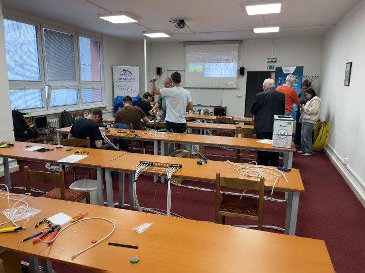 To znamená, že každý účastník měl k dispozici vlastní montážní sadu a tester. Navíc pro účely certifikace kvality instalované kabeláže byly