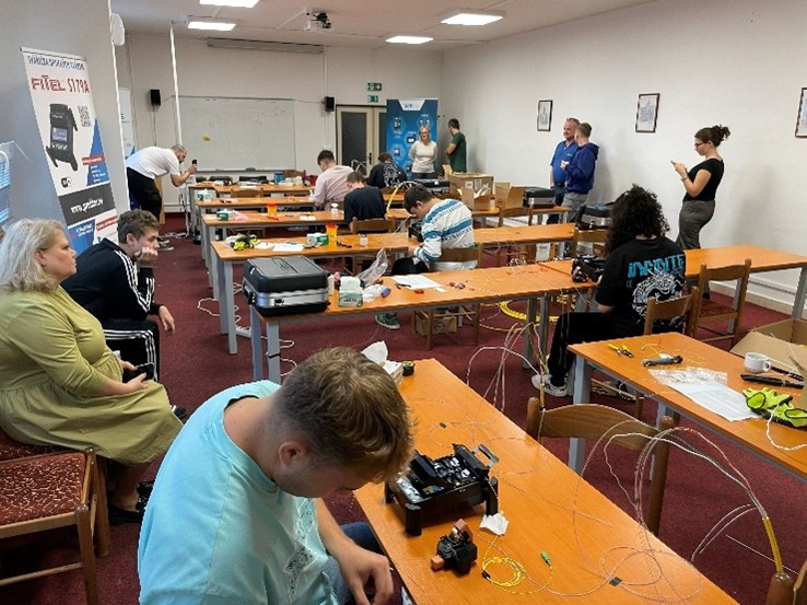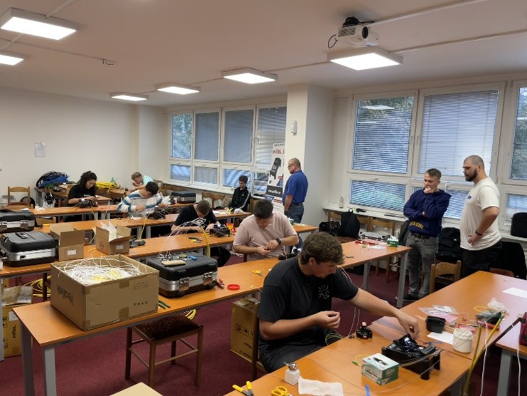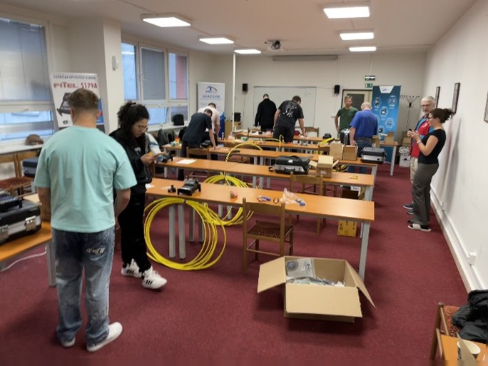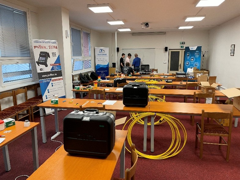 PROFiber Networking CZ s.r.o. zajistil 6 zcela nových sestav svářeček, lámaček a nářadí. Každý účastník měl k dispozici svářečku s aktivním 3D vystředěním na jádro Furukawa FITEL S179+.