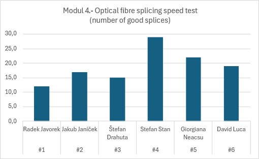 Výsledek 15 svarů a výše je dobrý výkon. Musíte pracovat přesně, rychle, koordinovaně. Musítě to mít v rukách. A k tomu potřebuje dobrou svářečku a lámačku. Kdo si to nezkusil, neví, jak je to těžké. Dostat se přes 30 svarů za 30 minut, to vám připadá jako nemožné. I když vám půjde vše od ruky, tak dostat se ke 30 svarům, vám bude připadat nemožné. A i když se přiblížíte ke 30ti svarům za 30 minut, tak přijde závěrečné měření. A to vám vyřadí svary s nadlimitním útlumem. Takže pozor: hlídejte si i kvalitu. Kvalitní a spolehlivá svářečka, jako je jádro Furukawa FITEL S179+.s aktivním 3D vystředěním na jádro, vám pomůže.