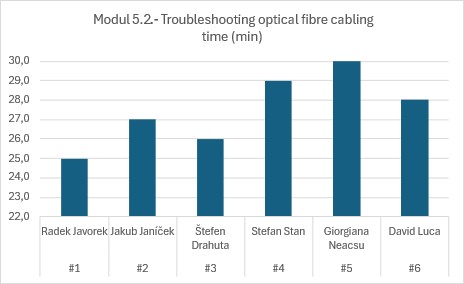 Ve středu po montáži optických tras se pokračovalo v testu zaměřování poruch na optické sti. Jako polygon se přitom využila optická trasa smontovaná při soutěži dle Modulu 1. Výstup z Modulu 1 se tak využil pro Modul 5.1.