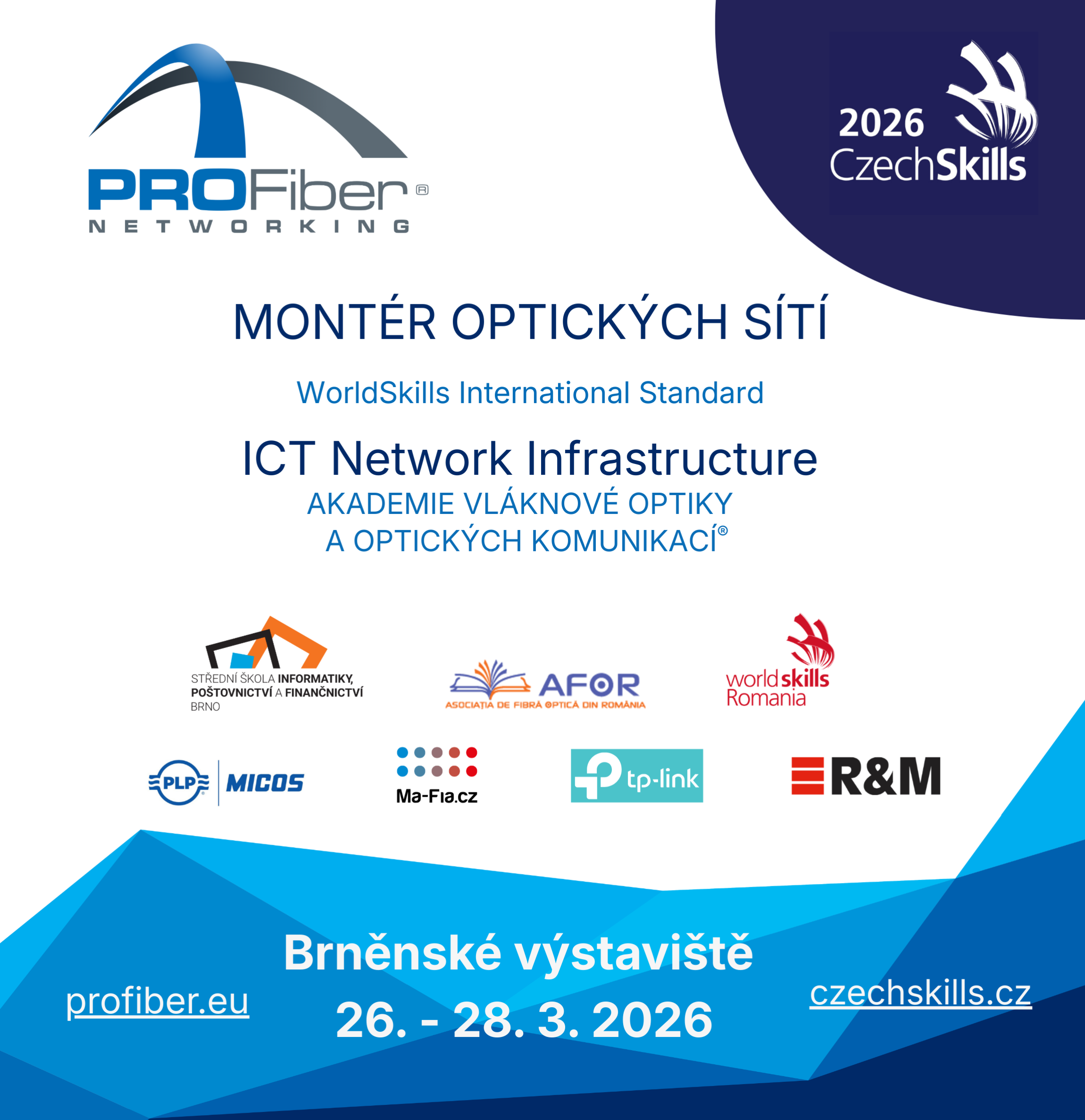 V rámci Stavebního veletrhu Brno probíhaly soutěže CzechSkills v různých kategoriích včetně MONTÉRA OPTICKÝCH SÍTÍ. PROFiber Networking a naše AKADEMIE VLÁKNOVÉ OPTIKY A OPTICKÝCH KOMUNIKACÍ® byli odborným garantem a partnerem této kategorie.